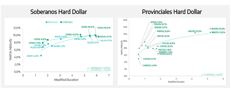 El movimiento estuvo liderado por el tramo largo (GD46 y GD41 +3,7%), evidenciando mayor sensibilidad de duration a cambios marginales en percepción de riesgo y tasas globales. Los bonos cortos mostraron avances más acotados (GD30 +1,6%; GD29 +1,7%), consistente con un mercado más expresivo en convexidad que en carry puro.