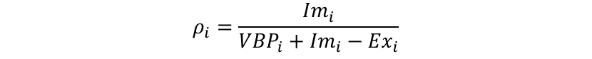 Donde: 𝑉𝐵𝑃 es el Valor Bruto de Producción de la rama industrial i; 𝐼𝑚 son las importaciones de i y 𝐸𝑥 son las exportaciones de i.