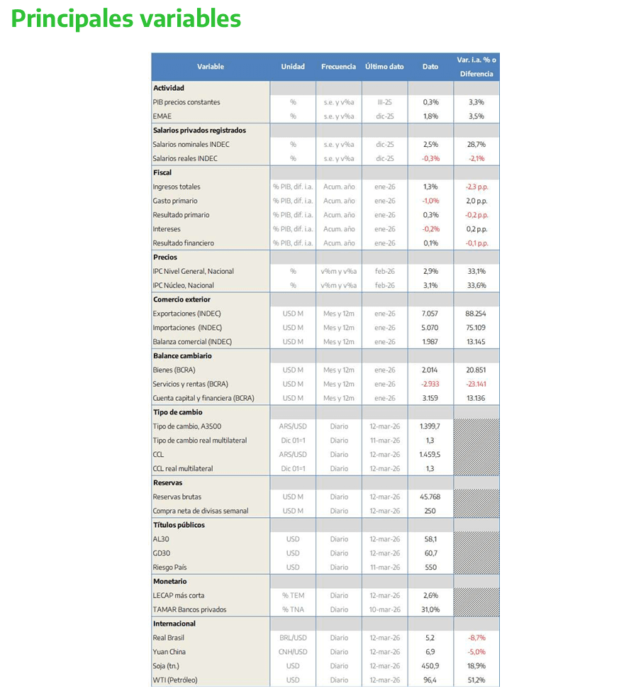 La escalada del conflicto bélico generaría en Argentina tanto oportunidades como riesgos. Mayores precios del petróleo impulsarían las exportaciones energéticas (un valor cercano a USD 100 por barril implicaría unos USD 5.000 millones adicionales), pero también presionarían sobre los costos e inflación local, ya que una suba del 10% en los combustibles agregaría alrededor de 0,38 p.p. al IPC en el mes.