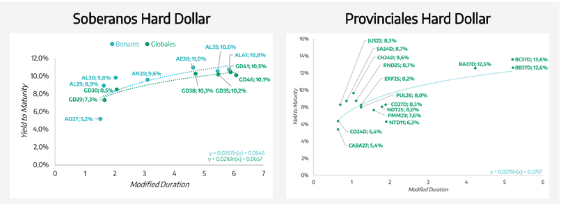 En términos relativos, la presión se concentró en la parte larga: GD41 (-3,6%), GD35 (-3,0%) y GD46 (-2,9%) lideraron las bajas. Por su parte, el tramo corto mostró mayor resiliencia, con caídas menores en GD30 (-1,4%) y GD29 (-0,7%), profundizando la pendiente de la curva.